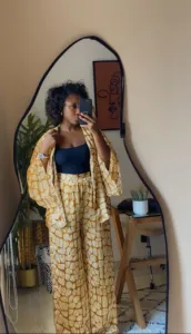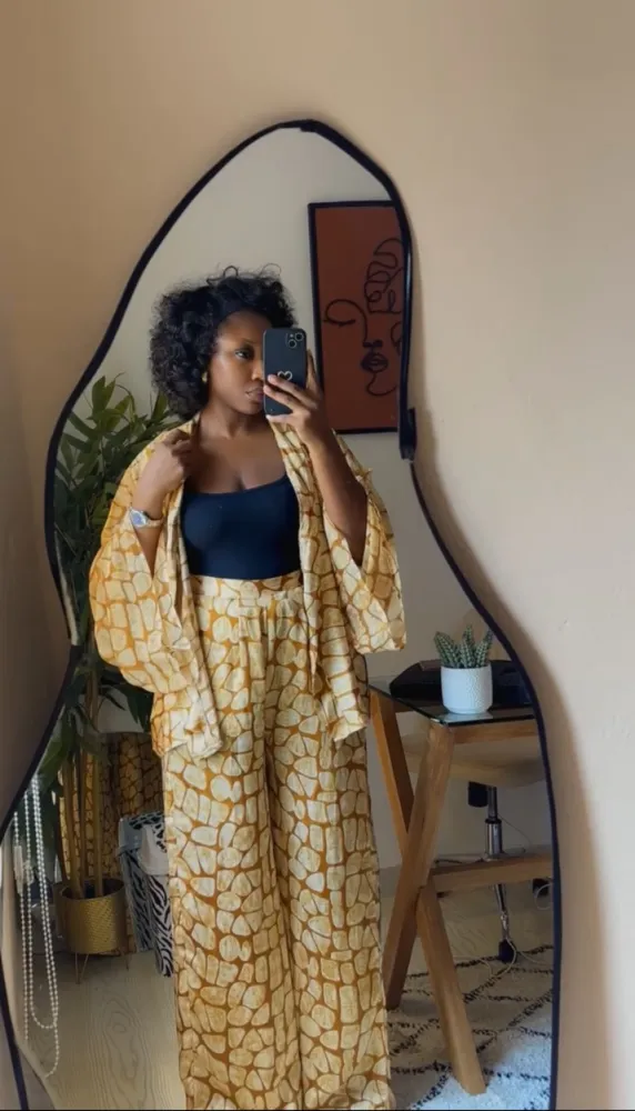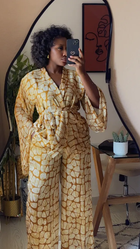 Ensemble chemisier pantalon en soie avec ceinture amovible